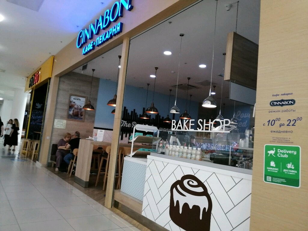 Кофейня Cinnabon — это место, где вы можете насладиться ароматным кофе и свежей выпечкой, такой как булочки с корицей «Синнабон».