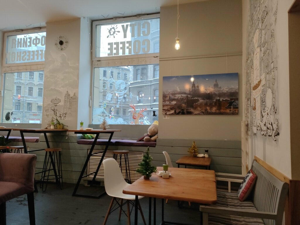 Кофейня City Coffee — это уютное место с красивым интерьером и цветами на столах. Здесь работают профессиональные бариста, которые готовят вкусные напитки.