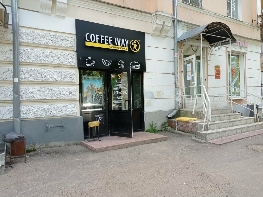 Кофейня Coffee Way — это уютное место, где можно насладиться ароматным кофе и вкусными десертами, такими как чизкейки и пончики.