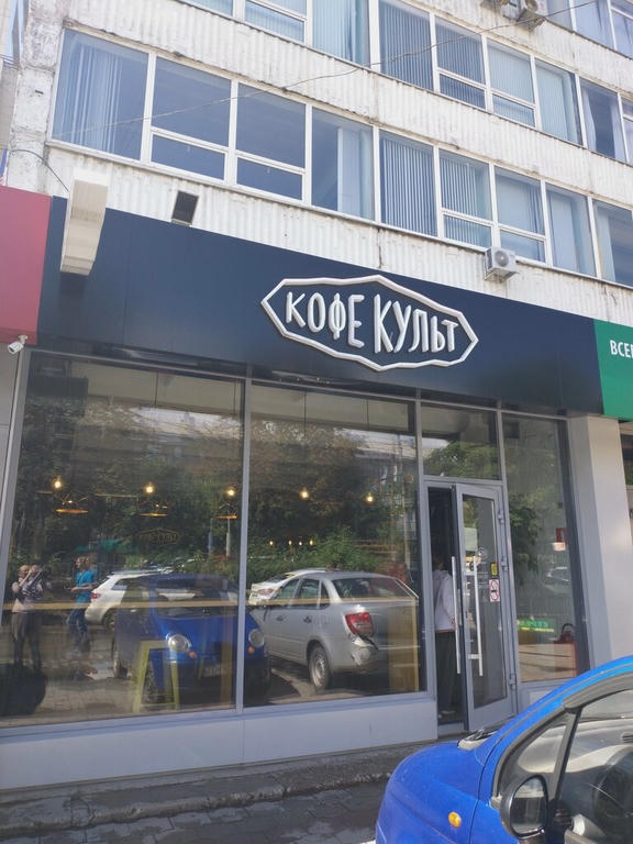 Кофейня «Кофе Культ» — это место, где вы можете насладиться ароматным кофе и вкусными десертами, а также провести время в уютной атмосфере, наблюдая за городом через панорамные окна.