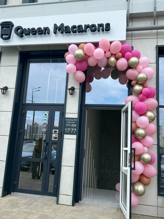Кофейня Queen macarons — это уютное место с красивым интерьером, где можно попробовать вкусные десерты, такие как макаронс и моти, а также вафельные трубочки со сгущенкой.
