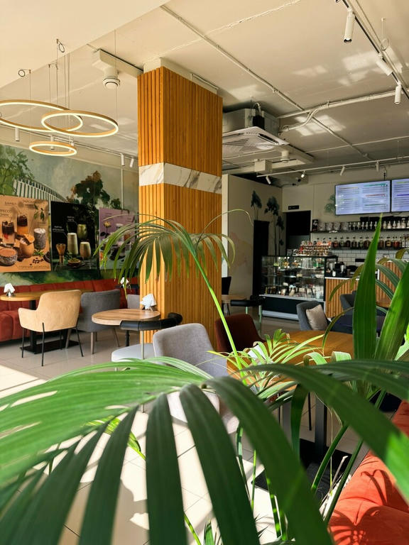 Кофейня «Вкус в городе» — это уютное место с красивым современным интерьером. Пространство продумано до мелочей: мягкая мебель, тёплое освещение, стильная посуда — всё создаёт атмосферу, в которой приятно работать или отдыхать.