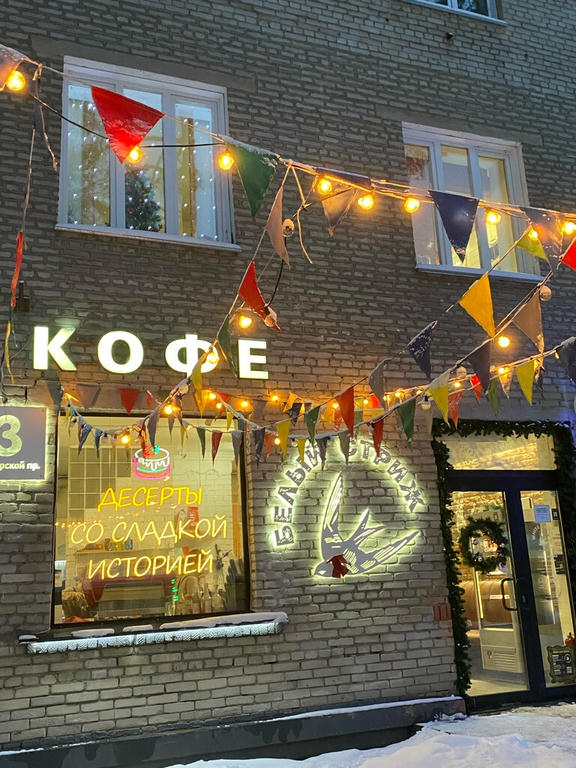Кофейня White swift Coffee — это уютное место с ламповым интерьером, ретро-телефоном, камином и иллюстрациями на стенах.
